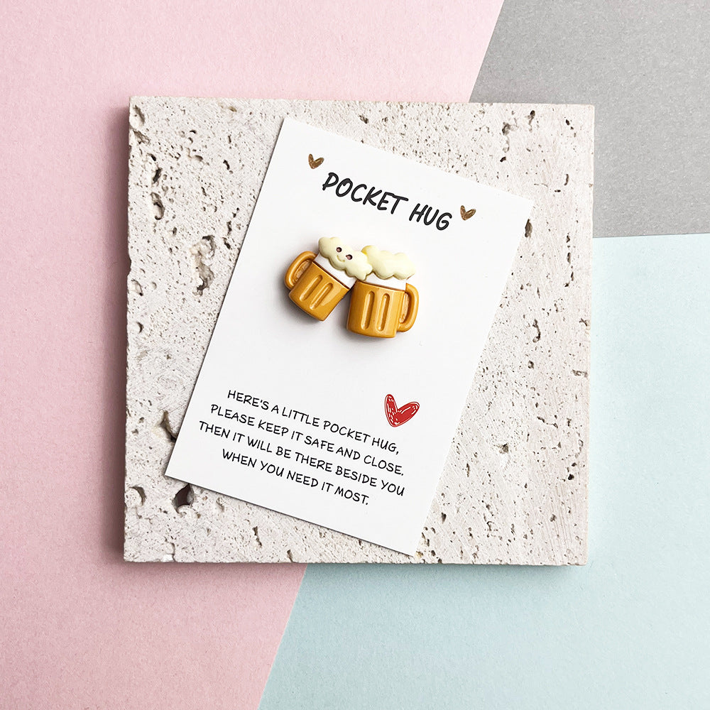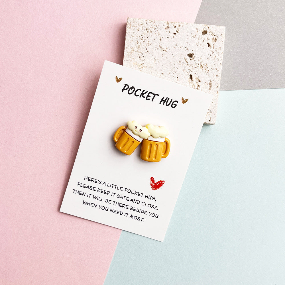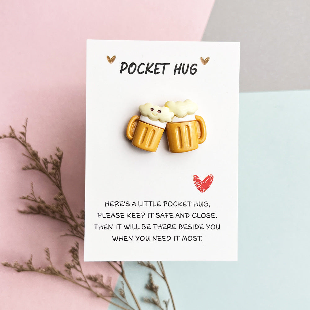 Say hello to Pocket Hug Cheers Buddy — two happy beer mugs clinking in joy, bringing a smile, a toast, or a quiet moment of comfort. Whether you’re miles apart or just needing a boost, this mini charm delivers light-hearted support with fizzy warmth.