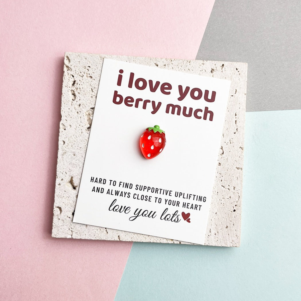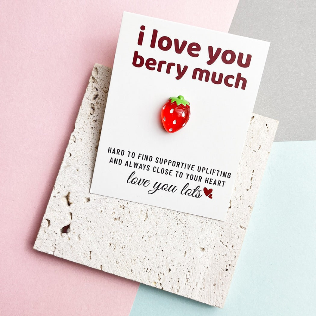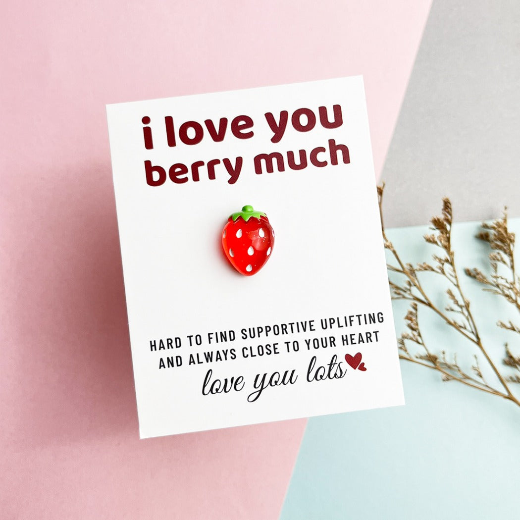 Features the cute phrase "I LOVE YOU BERRY MUCH" with a heartfelt love sentence.
